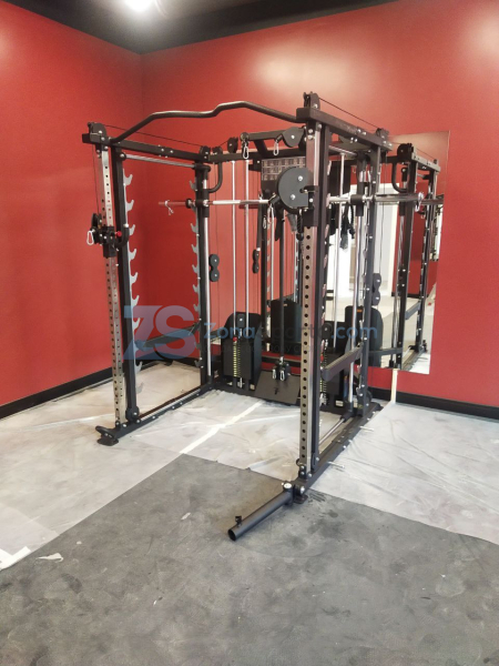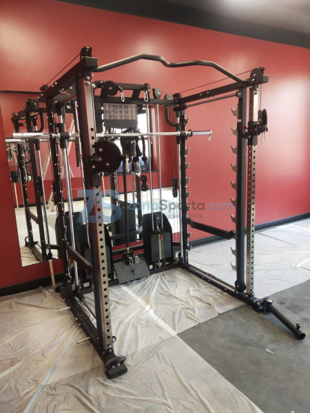 3D Машина Смита; двойная регулируемая тяга, силовая рама, нижняя тяга, два независимых блока внутри рамы для верхней тяги, тренажер Landmine, крепление для каната, блочные ручки и манжеты для различных упражнений